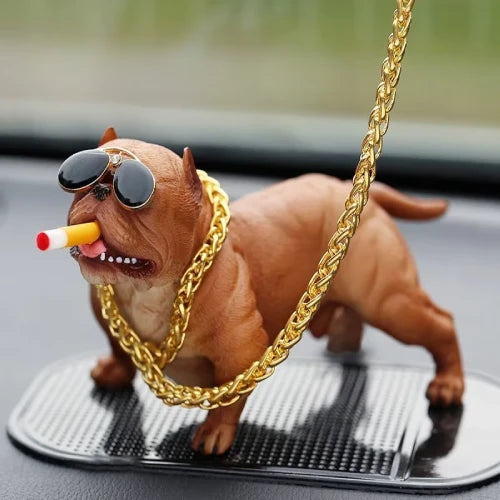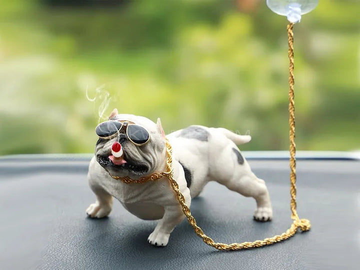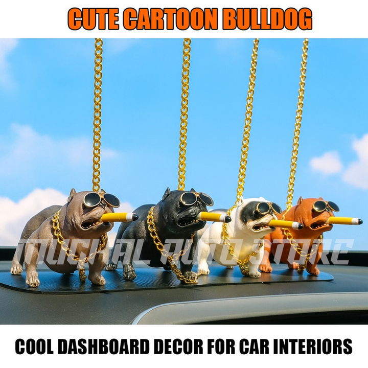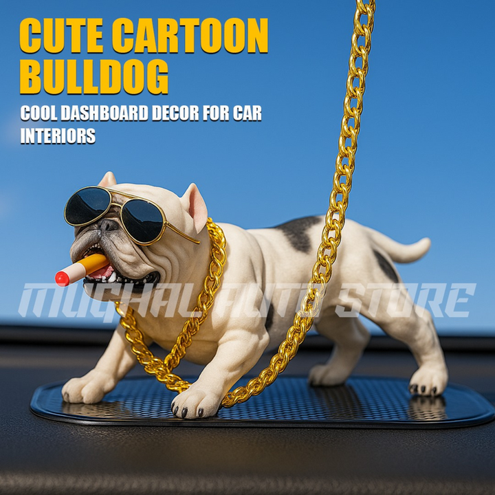 🕶️ Cool Cartoon Bulldog Dashboard Decor – Car Interior Ornament