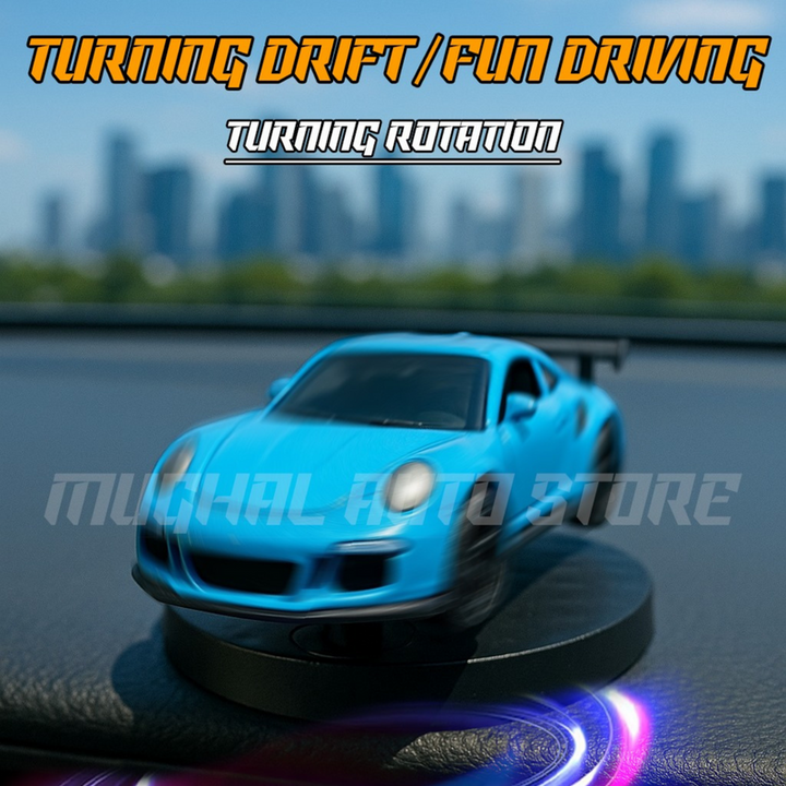 Take your car interior to the next level with this LED Rotating Sports Car Dashboard Toy â where performance meets style! Designed for auto enthusiasts, this cool decor features a mini sports car mounted on a 360° spinning LED base that creates a mesmerizing drifting effect as you drive.