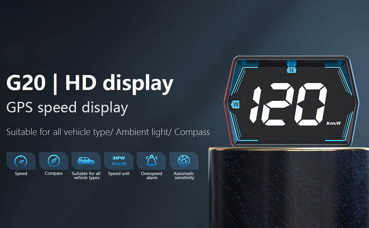 G20 HUD Car Head-Up Display Speedometer, HD Driving Projection Odometer with Compass, Auto Brightness, Speed Warning Alarm