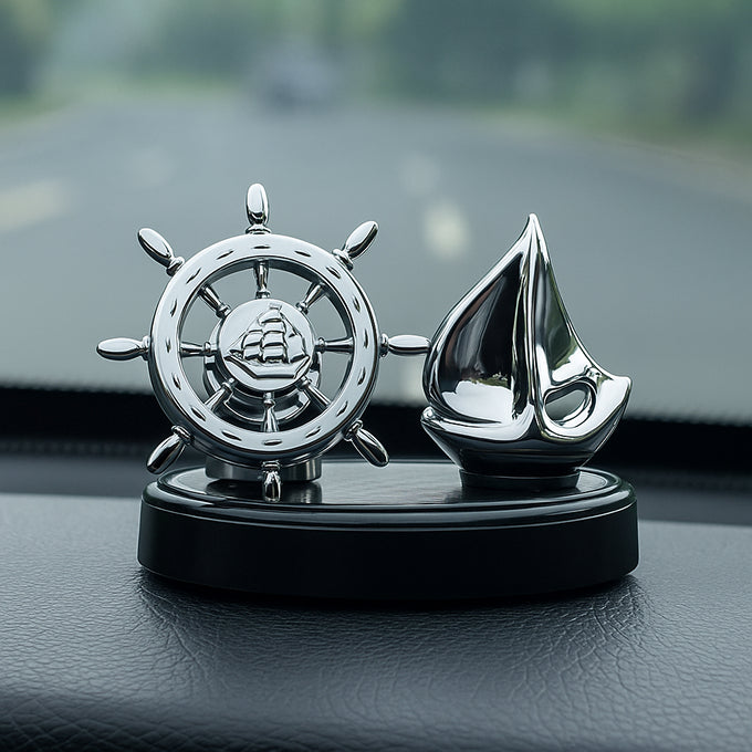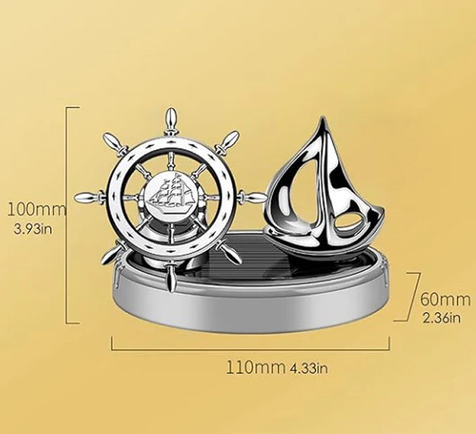 Solar-Powered 360° Rotating Nautical Dashboard Ornament – Ship Wheel & Sailboat